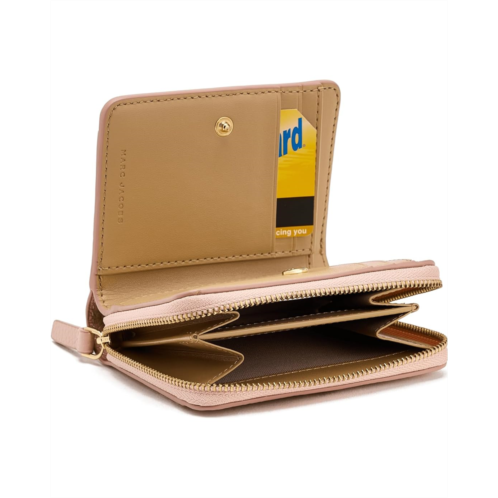 - Carry your cash in the simple and classy design of the Marc Jacobs The Leather Mini Compact Wallet featuring a magnetic snap with an additional zippered compartment, finished with a branded exterior.