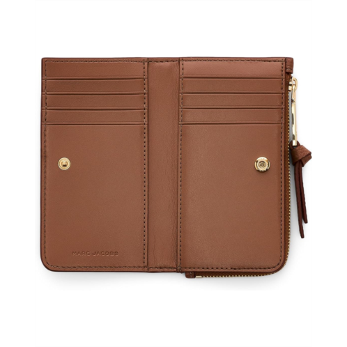 - The Marc Jacobs The Leather Slim Wallet is a compact hand-carry wallet with a bi-fold design. Secured with a snap closure, it includes eight card slots, two interior slip pockets, and one zip coin pocket. Its leather construction adds to its durability. This leather wallet is a great choice to keep your money and cards organized in one place.