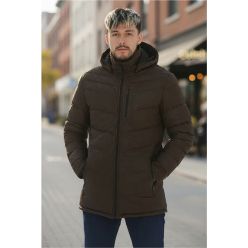 [US] Infinity Leather mens brown Leather quilted jacket trekking hooded puffer winter coat - summit