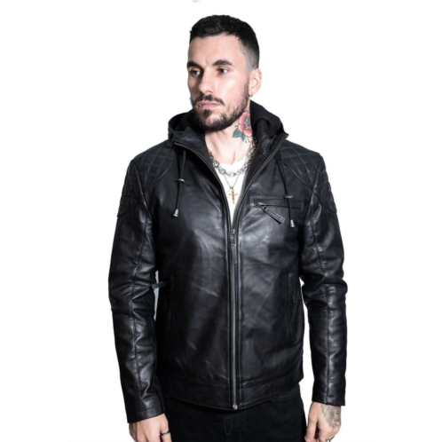 [US] Infinity Leather mens retro hooded Leather bomber jacket-zaria