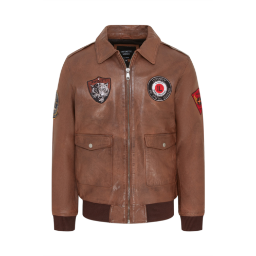 [US] Infinity Leather mens tan Leather bomber g-1 aviator collar jacket - maverick