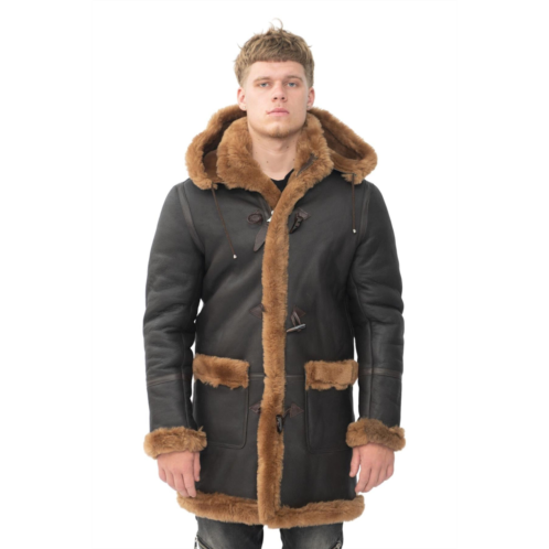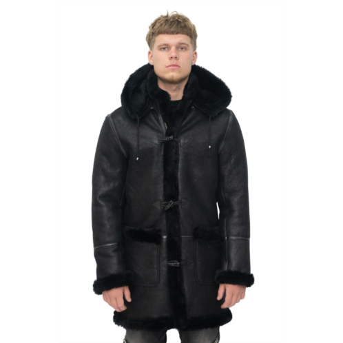 [US] Infinity Leather mens winter sheepskin hooded duffle coat-isleworth