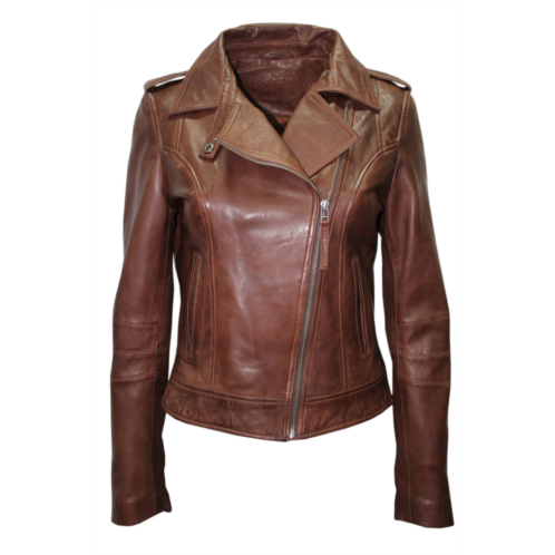 [US] Infinity Leather womens chestnut Leather biker jacket-reynosa