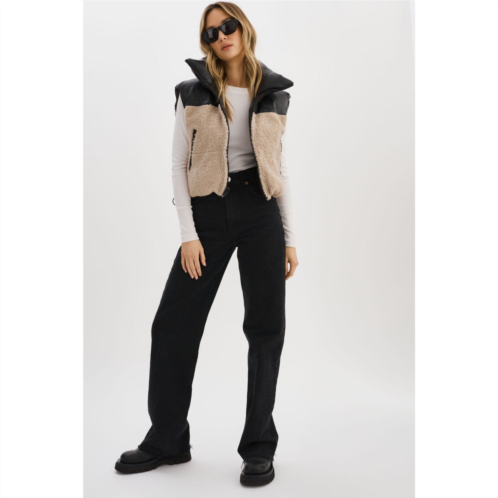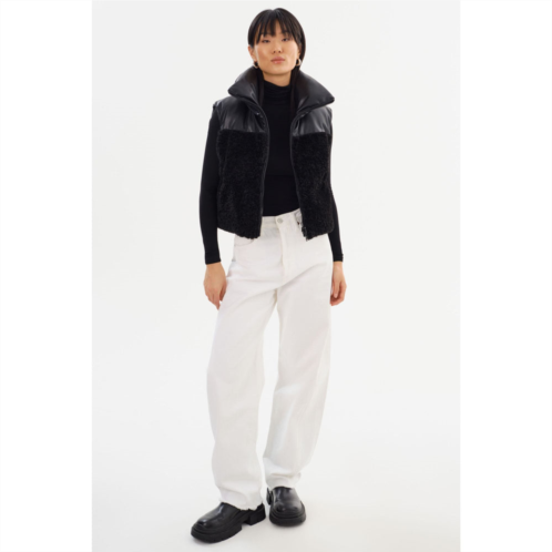 The MELICIA Reversible Puffer Vest is a stylish addition to your outerwear collection. With waist zip pockets for convenient storage and a reversible design, you have the flexibility to create different looks to suit your mood. On one side, you'll find a sleek full faux leather design, while the other side features a cozy combination of faux leather and faux sherpa.