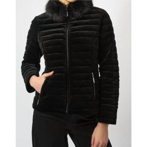 Throw this vest over an all black outfit for a perfectly polished look.This regular-fit, long-sleeve jacket features a quilted, padded design and is composed of 95% polyester and 5% spandex. It includes a stand collar with fur detailing, a front zipper closure, and side pockets. The fabric is treated to resist creasing for a smooth appearance during travel or extended wear.