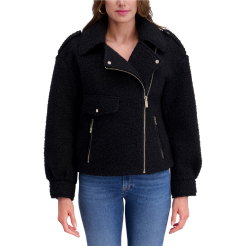 Introducing the Kensie Boucle Wool Moto Jacket, a chic and stylish addition to your outerwear collection. This sleek jacket features a classic black color and trendy moto-inspired design. With a length of approximately 22 inches from shoulder to hem, this jacket is both flattering and versatile. The zipper closure adds a modern touch, while the 100% polyester fabric and lining make it comfortable and easy to care for. Elevate your look with this on-trend Kensie jacket, perfect for any occasion. Machine washable and imported.