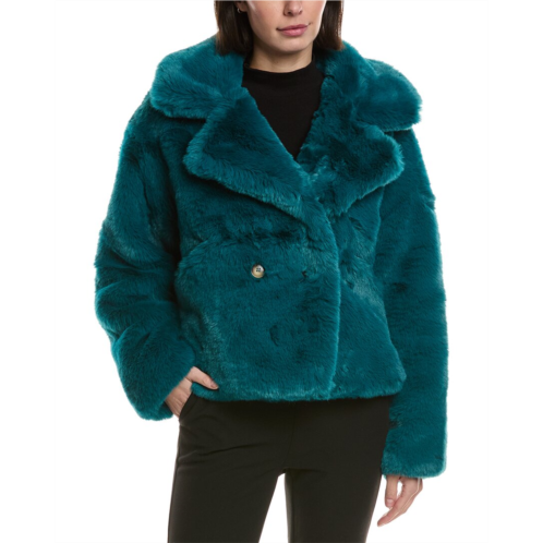 Introducing the NOIZE Loretta Coat, a stylish and cozy addition to your outerwear collection. This double-breasted coat features a luxurious faux fur design and convenient side slip pockets. The oceanic color/pattern adds a trendy touch, while the medium weight construction makes it perfect for transitioning between seasons. The coat is made with 100% polyester and filled with 100% recycled repet, embodying Noize's commitment to sustainability. Whether you're out running errands or heading to a night out, the NOIZE Loretta Coat will keep you warm and fashionable. Professional wet clean recommended. Imported. Model is 5'9 and is wearing a size medium. Measurements may vary slightly by size.