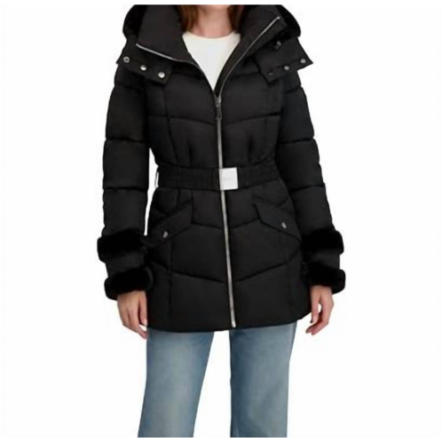 [US] Laundry by Shelli Segal stretch quilted puffer coat with faux fur trim puffers in black