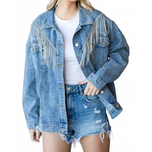 [US] Veveret rhinestone fringe denim jacket in blue