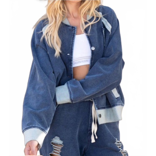 [US] POL french terry baseball jacket in indigo
