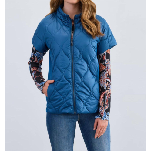 You'll be reaching for this puffer jacket all season long.Meet the FDJ Short-sleeve Mixed Media Jacket in indigo, a stylish winter essential for your travel wardrobe. This women's jacket features short sleeves and a mockneck, combining 100% nylon with a 95% cotton/spandex blend for a textured feel. Closure - Zip closure. Care - Machine wash separately inside out with a mild detergent on a delicate cycle, using cold water; hang to dry and avoid ironing or using fabric softeners.