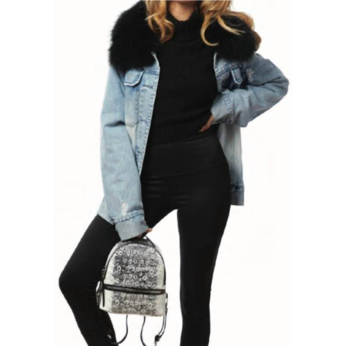 Throw this adorable jacket over just about anything for an effortlessly stylish look.Oversized distressed denim jacket with removable fur trim collar. Perfect for all year! Layer with sweaters for fall and winter - remove the fur trim for spring and summer!