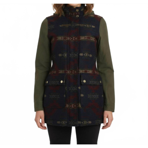 Everyone needs a classic pea coat in their closet and this version might just be our favorite.Introducing the Mixed Media Aztec Print Coat by CoffeeShop, a Boho Chic masterpiece in vibrant Multi color. This women's pea coat features long sleeves and a cozy turtleneck, crafted from 100% cotton for warmth and comfort. Lined for added insulation, it boasts a unique Aztec-inspired pattern and a secure zip closure to elevate your winter wardrobe. Designed for a vacation-ready look, care for this stylish piece by dry cleaning.