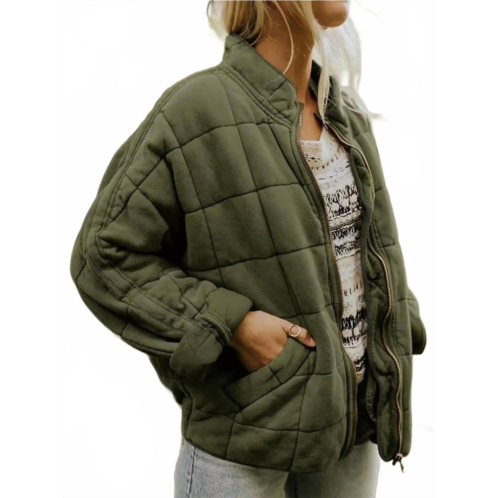 [US] Sweet as a Peach quilted zip-up jacket in olive green