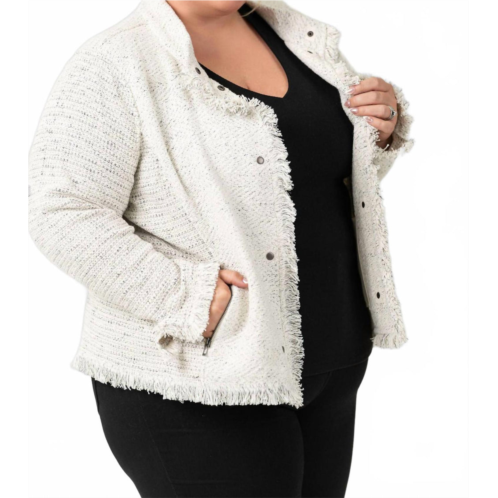 [US] Nic Zoe collared fringe jacket - plus size in cream