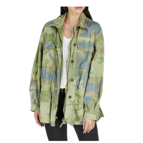 This utility jacket is the perfect combination of cool and feminine.This imported lightweight jacket is made from 100% cotton and features a neutral camouflage print. It is designed with a spread collar, a front zipper closure with a button storm flap, and a drawstring waist. Functional details include button cuffs, flap-patch chest pockets, and decorative faux front pockets. Care instructions require machine washing and tumble drying.