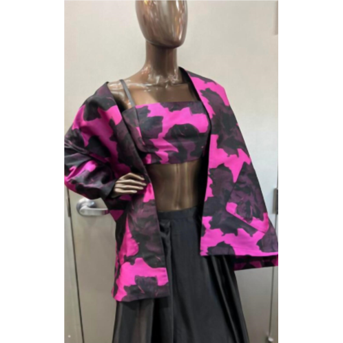[US] Zinzane abstract floral bandeau and jacket set in magenta/black