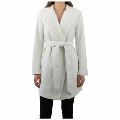 [US] Monoreno hooded shawl collar wrap coat in white