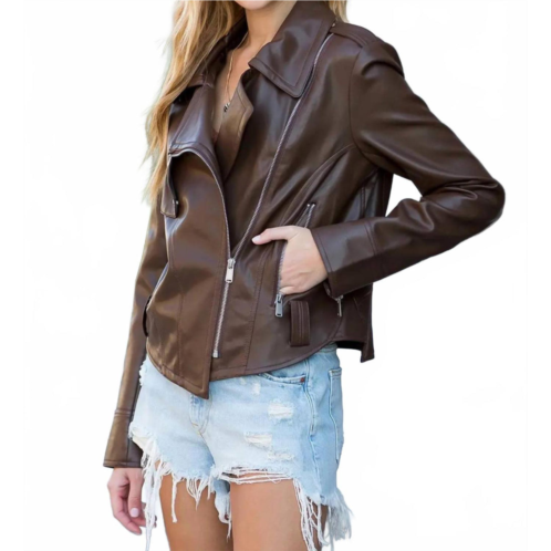 [US] BluIvy vegan leather biker jacket in brown