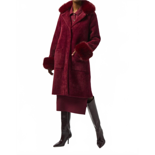 [US] Joseph Ribkoff detachable faux fur trim long sleeve coat in merlot