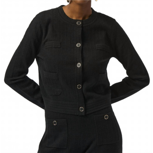 [US] Joseph Ribkoff sweater knit crew neck button front jacket in black