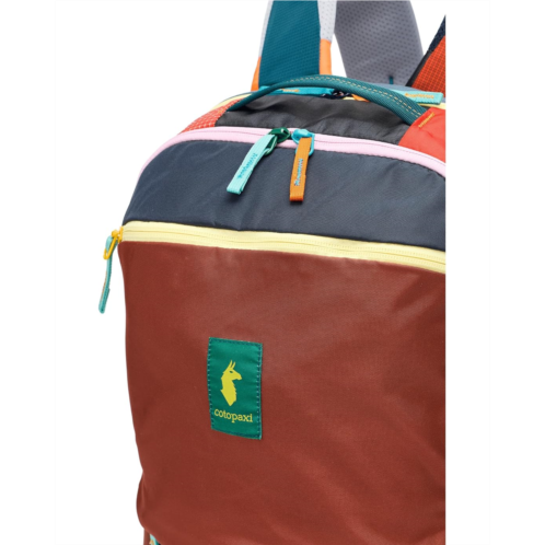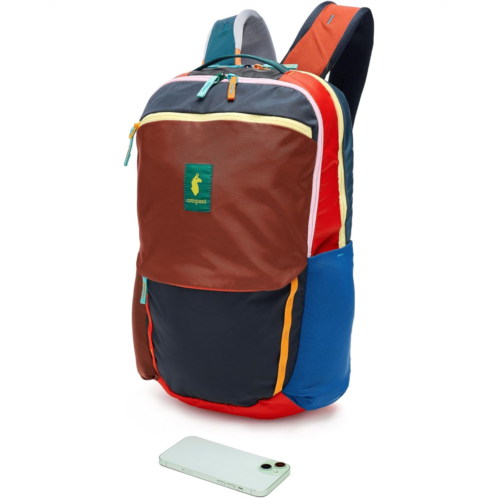 - The Cotopaxi Allpa 26L Daypack hauls your daily essentials in style with a laptop panel and mesh water bottle pockets. Its Del Dia version uses repurposed fabric, so each pack is one of a kind. A luggage pass-through and durable build make it perfect for work or travel. This laptop backpack has a zippered main compartment with an internal organization, a fleece-lined pocket, and a 16' laptop pocket with a 13' tablet sleeve. Made from nylon, it is designed with padded shoulder straps, a top grab handle, a luggage pass-through strap, and exterior daisy chain loops.