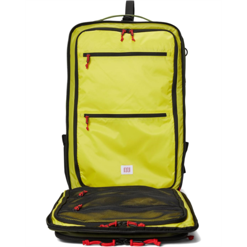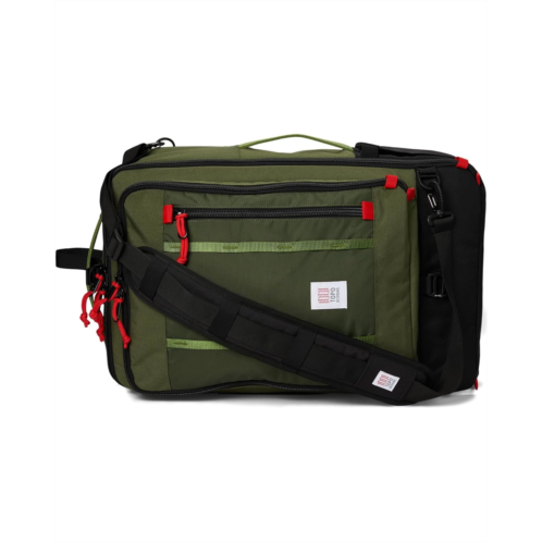 - Your ideal one-bag travel companion, the Topo Designs Global Travel Bag offers 3-way carry (backpack straps, shoulder strap, and grab handles) options, plenty of internal organization, expandable side water bottle pockets, and an external laptop sleeve for easy access. The foam structure with padded recycled ballistic nylon back panel offers added comfort. This travel bag offers a U-shape entry to the large main compartment. The size of the bag is perfect for a long weekend getaway. Carry-on compliant and machine washable, this bag is crafted from soft shell nylon fabric that makes it durable to withstand wear and tear.