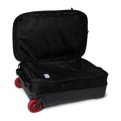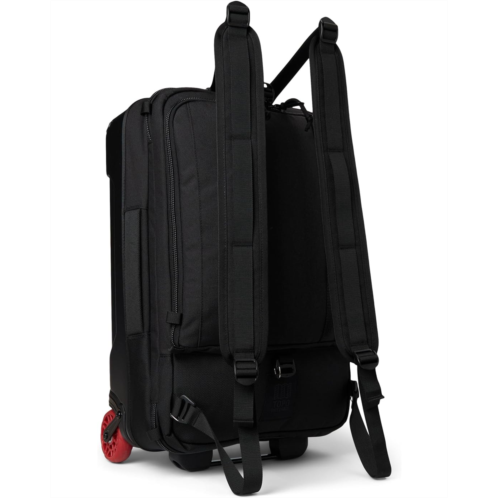 - Built to make one-bag-travel as easy as possible, the Topo Designs Global Travel Roller packs plenty of internal organization into its carry-on friendly size, and three-way carry options ensure a smooth trip. Use the side grab handles or stowable backpack straps for hauling your bag through cities or navigating airplane aisles, or extend the suitcase handle to roll smoothly through the concourse. Two internal compartments feature both mesh and lined pockets for holding all of your small gear. The heavy-duty, crush-proof wheels ensure a smooth ride and PackFast bag attachment easily clips so you can tote both your carry-on and personal items efficiently.