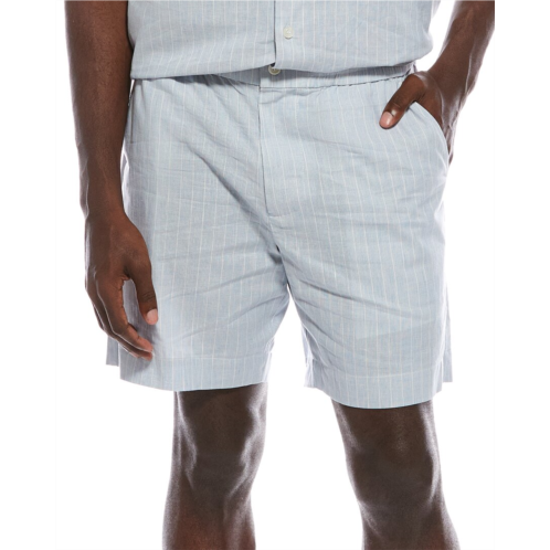 Introducing the SIMKHAI Sebastian Short, a stylish and comfortable addition to any man's wardrobe. With its sophisticated Haze Stripe color pattern, this short is perfect for a casual day out or a laid-back weekend look. Featuring an inseam of approximately 7 inches and an 11-inch rise, this short is designed to fit just right. The elastic waist and four-pocket styling add a touch of convenience and functionality. Made from a blend of 62% cotton, 30% linen, and 8% polyester, this short is both breathable and durable. The zip fly with button closure ensures a secure fit. Machine washable and imported, this short is easy to care for. Get your hands on the SIMKHAI Sebastian Short today and elevate your summer style game.