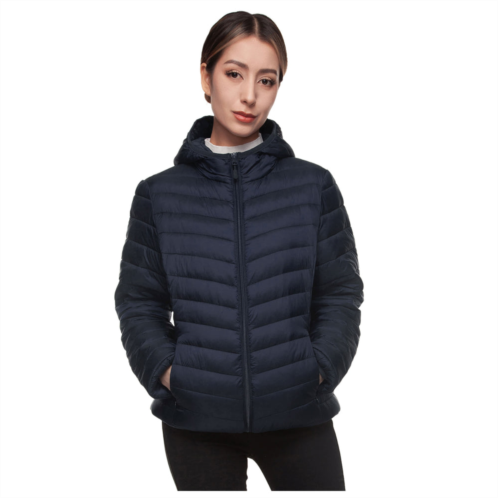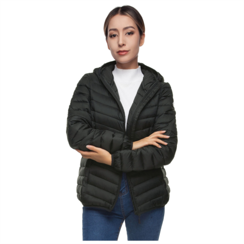 Stay warm and stylish with our Rokka&Rolla Women's Light Packable Puffer Jacket. Featuring an elastic waist and cuffs for a snug fit, this soft jacket includes zippered pockets and inside pockets for secure storage. The hood provides extra protection against the elements, while the packable pouch makes it perfect for travel and on-the-go convenience. Effortlessly blend comfort and functionality with this versatile outerwear essential.