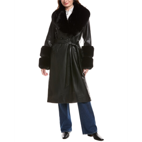 Introducing the stylish and sophisticated Hutch Eve Coat for women. This double-breasted coat features a luxurious faux leather design with faux fur trim, making it the perfect addition to your outerwear collection. With two front pockets and a tie belt for added detail, this coat is both flattering and functional. The black color and approximately 49-inch length from shoulder to hem add a touch of glamour to any outfit. Made with high quality materials, including 55% polyurethane and 45% polyester, this coat is as durable as it is fashionable. The Hutch Eve Coat is perfect for keeping warm and looking chic all winter long.