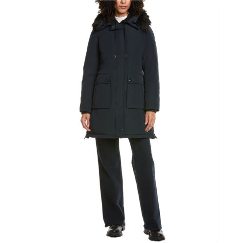 Introducing the Sam Edelman Parka, a chic and practical addition to your outerwear collection. This navy parka features a hooded back with removable faux fur trim, a polar fleece hood lining, and a drawcord at the waist for a flattering silhouette. With four front pockets and zippered slits at the hem, this parka is as functional as it is stylish.Measuring approximately 34 inches from shoulder to hem, this parka is designed for a comfortable fit. The model is 5'9' and is wearing a size small, but please note that measurements may vary slightly by size. The parka is secured with a zipper and snap closure for added convenience.Made from 100% polyester shell, 100% nylon lining, and 100% acrylic trim, this parka is both durable and easy to care for - simply machine wash and tumble dry. Imported from Sam Edelman, a brand known for its laid-back, trendsetting styles, this parka is sure to elevate your winter wardrobe.