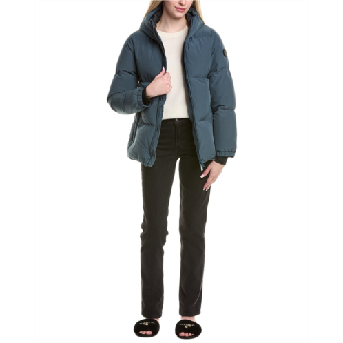 Stay warm and stylish this winter with the NOIZE Stacy Puffer Coat. This trendy jacket features a hooded back, two zippered front pockets, and extended cuffs. The zipper closure makes it easy to stay snug in the cold weather. The coat is made of 89% polyester and 11% spandex for a comfortable fit. The lining is 100% nylon. It is approximately 28 inches from shoulder to hem and the model is 5'9.5 and wearing a size small. Machine washable and imported. Get your hands on this chic Acier colored puffer coat today!