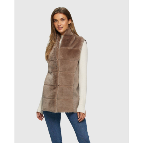 Experience versatile warmth with this reversible shearling lamb vest, featuring a luxurious cashmere and wool back. Perfect for layering on chilly days while maintaining a polished look.