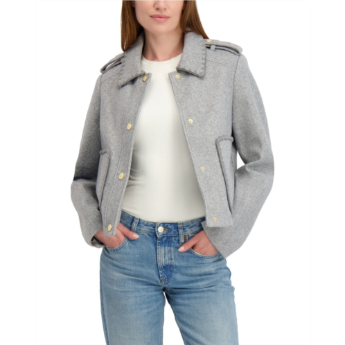 Introducing the Laundry by Shelli Segal Cropped Jacket, a stylish addition to your outerwear collection. This heather grey jacket features a spread collar, two front pockets, and button cuffs for a chic look. The button front closure adds a touch of sophistication, while the 100% polyester fabric ensures durability. Whether you're dressing up for a night out or running errands, this cropped jacket is a versatile piece. Dry clean only. Imported. Approximate length is 22 inches from shoulder to hem. Measurements taken from a size small and may vary slightly by size. Stay on-trend with this fashionable jacket from Laundry by Shelli Segal.