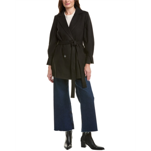 Introducing the elegant and stylish Pascale La Mode Short Trench Coat. This timeless outerwear piece is perfect for any woman looking to elevate her wardrobe. Featuring a and is wearing a size small. Measurements may vary slightly by size.
