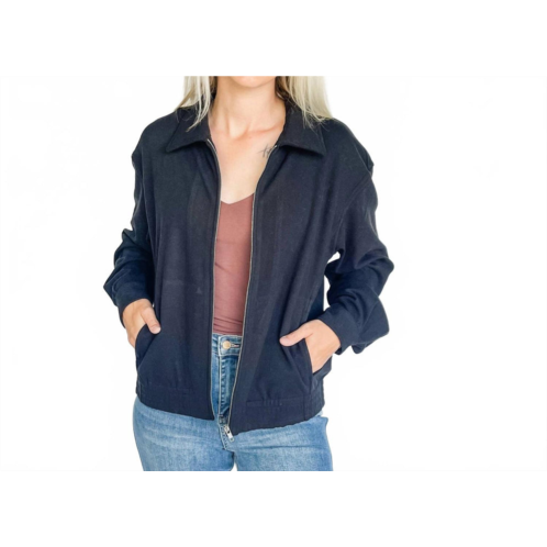 A riff on your favorite classic bomber jacket.Hem & Thread presents the Jersey Zip Bomber Jacket in Black Suede, an ideal piece for a minimalist fall wardrobe. This jacket features long sleeves, a blend of 80% polyester, 15% rayon, and 5% spandex for a soft and cozy fit, perfect for layering. Designed with a zip closure, it offers a cool edge and a relaxed vibe suitable for casual strolls or dinner parties. The solid pattern and absence of lining prioritize comfort and style without sacrificing warmth.
