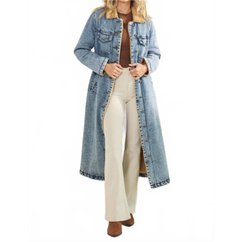 [US] Veveret teddy lined long jacket in medium denim