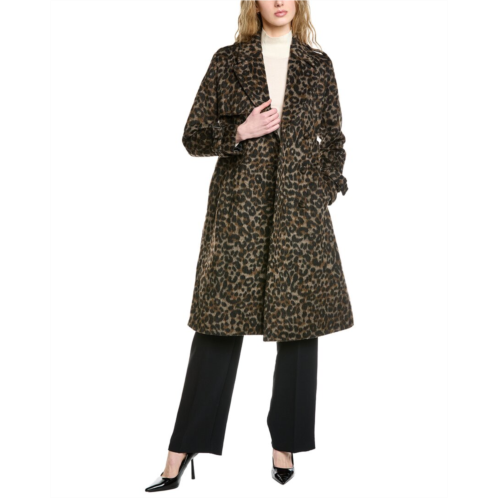 - Double-Breasted Wool-Blend Coat In Leopard With Notched Lapel, Storm Flap Accents, Two Front Pockets, Belted Waist, Strap At Cuffs And Center Vent At Back Hem