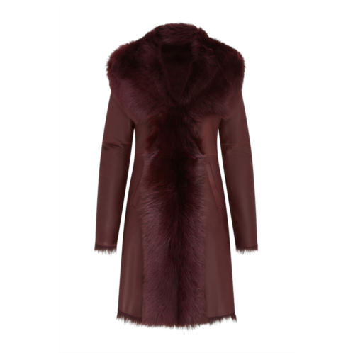 [US] Infinity Leather womens burgundy toscana sheepskin Leather hooded trench coat - coast