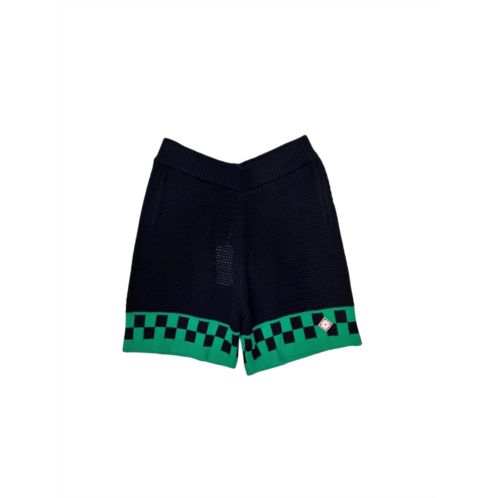 [US] CASABLANCA black knit shorts with green checkered hem