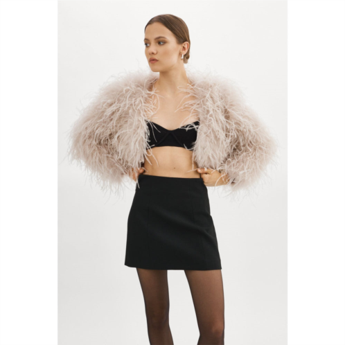 A little drama & luxury to keep things exciting. An ode to vintage glamour, this cropped jacket is covered in wispy ostrich feathers that flounce around with every step. Featuring in-seam waist pockets and a satin lining for added comfort, pair with everything from bandeaus and leather trousers to bodysuits and jeans.