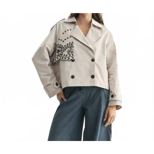 [US] Camellia embroidered trench jacket in beige