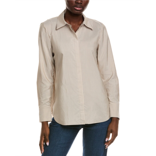 Style: blouseClosure: button frontSleeve Length: long sleeveHem: shirttail hemFit: relaxedNeckline: spread collar