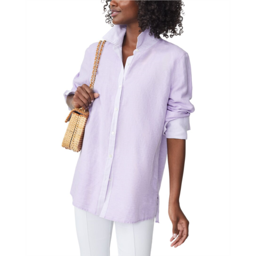 - Anilee Linen-Blend Blouse In Lavender With Long Sleeves, Shirt Collar