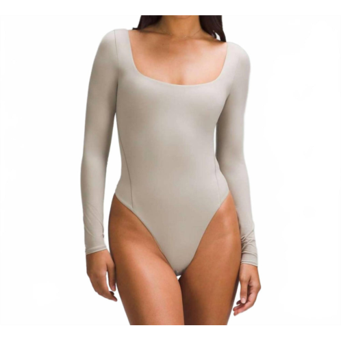 [US] Lululemon wundermost ultra-soft nulu square-neck long-sleeve bodysuit in river stone