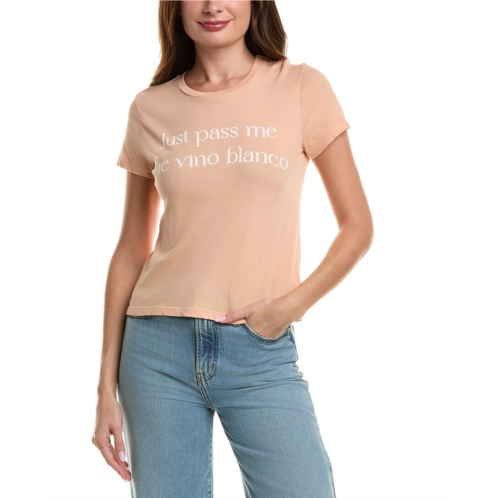 Introducing the Project Social T Vino Blanco T-Shirt, a must-have in every woman's wardrobe. This apricot quartz t-shirt is the perfect blend of comfort and style, with a relaxed fit and 100% cotton fabric. Measuring approximately 22 inches from shoulder to hem, this top is versatile and easy to style. Whether you dress it up with your favorite skirt or keep it casual with jeans, this Vino Blanco T-Shirt is sure to become a go-to piece. Made in the USA, this shirt is a part of the Project Social T brand known for creating comfortable essentials in Los Angeles. Don't miss out on adding this chic t-shirt to your collection today.
