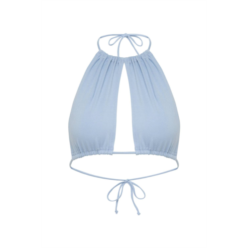 Pair this crop top with your favorite high-waisted jeans or maxi skirt.Chic sleeveless crop top that exudes sophistication. Crafted from modal. Responsibly made in US. Features a daring cutout silhouette. Adjustable halter neck and tie closure. Provides a customizable fit. Sleek design in a solid color will complement your curves flawlessly.