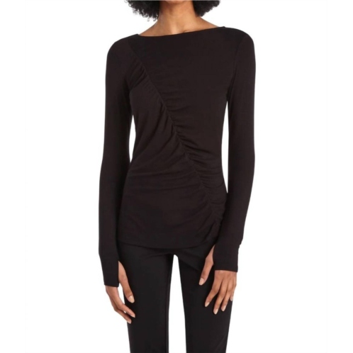 A long sleeve top you can wear with denim, skirts, well... just about anything!Ruching details. Model is 5'10.5' and is wearing a size small. 90% RAYON, 10% NYLON. Dry clean only. Imported.