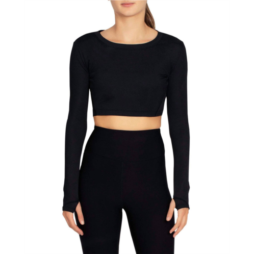 [US] Nicole Miller cropped active long sleeve top in jet black